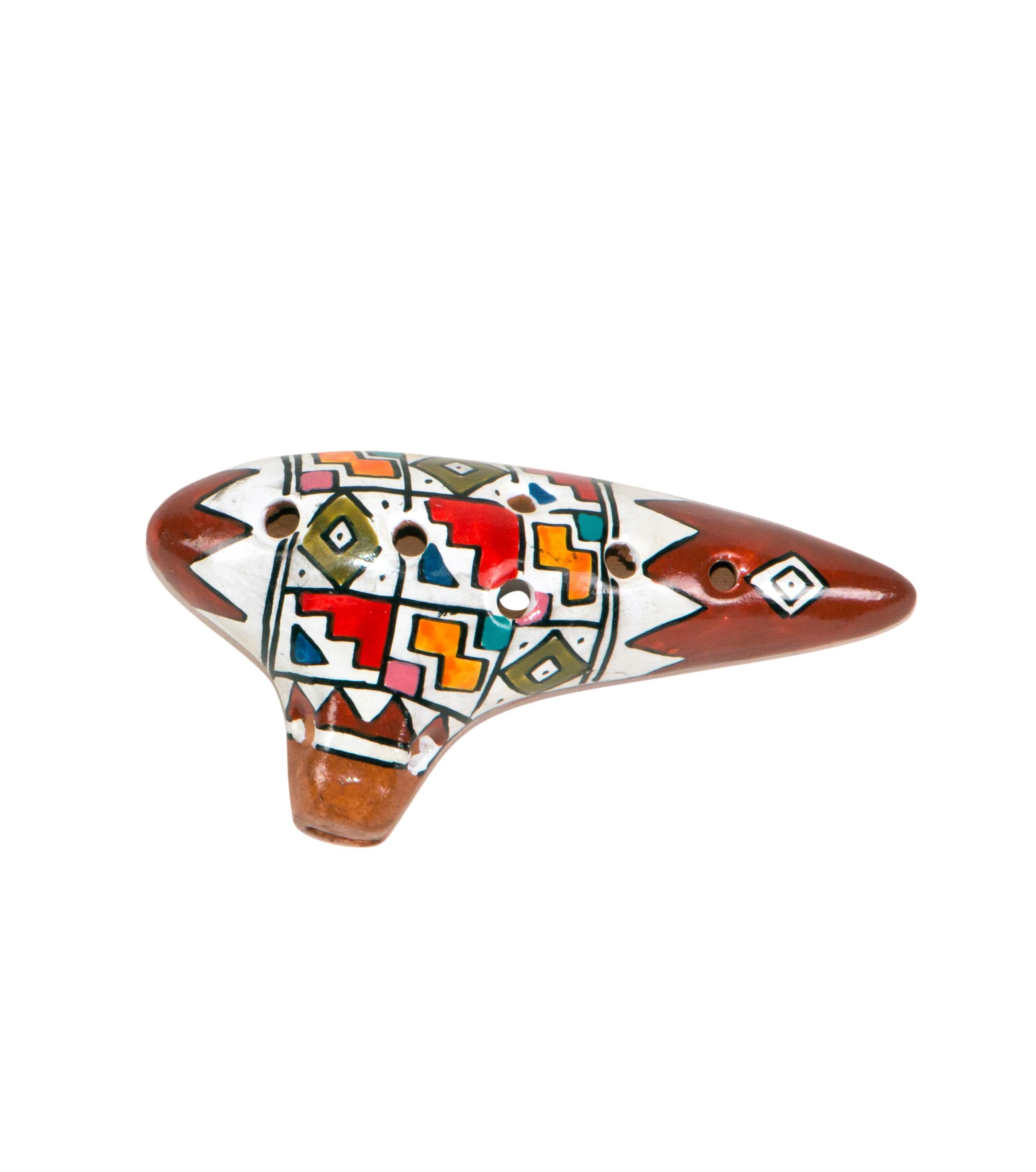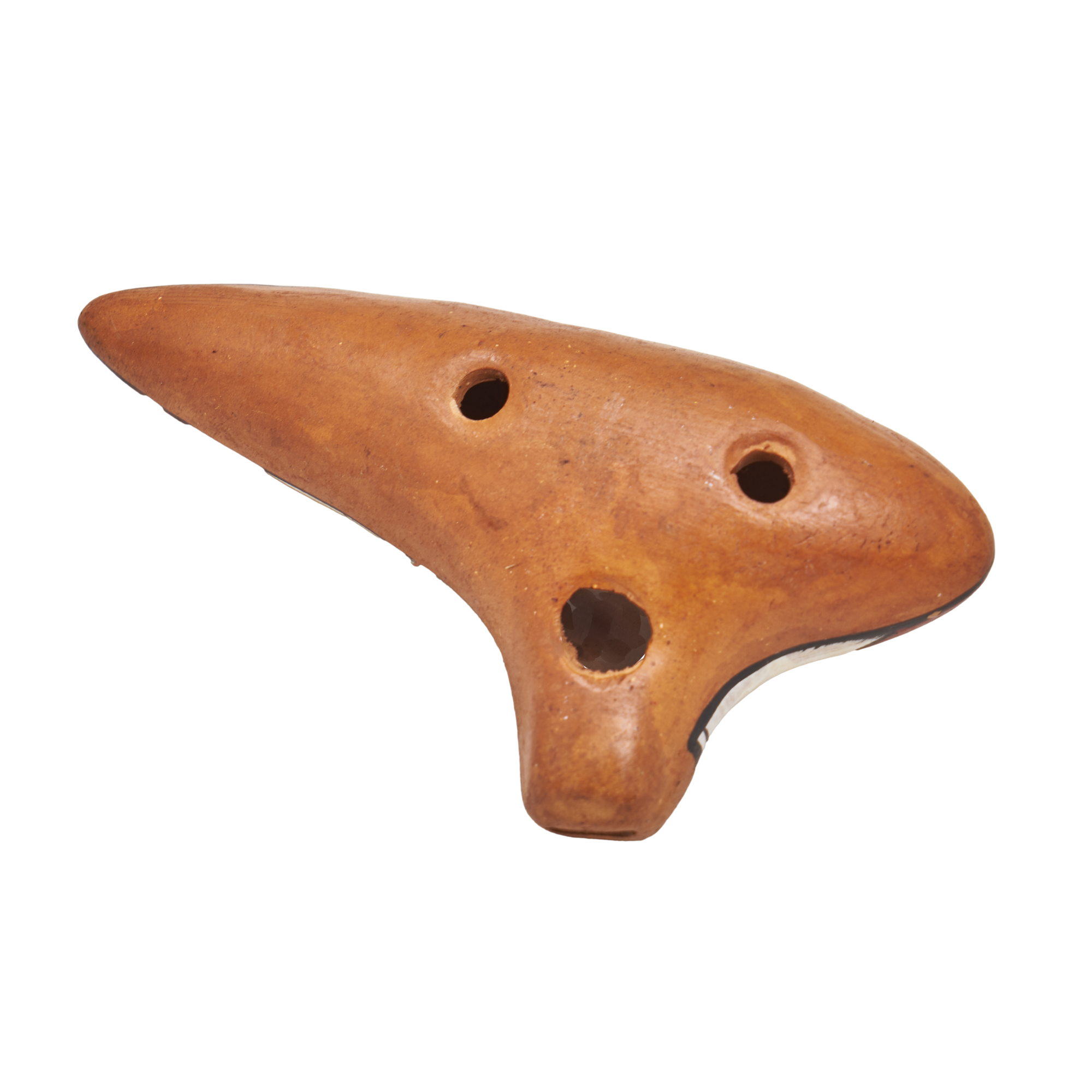 - Keramikflöte, sechs Fingerlöcher oben, zwei auf der Unterseite